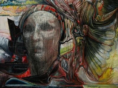 Le rêve du petit singe, huile sur pavatex, 41x33 cm