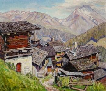 Vue sur Grimentz, huile sur toile, signée, 58x66 cm