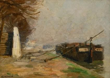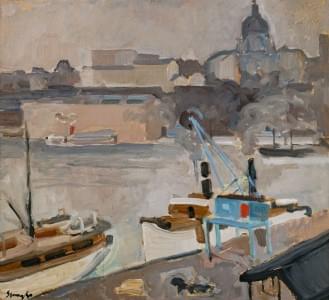 La rade du quai des Eaux-Vives, huile sur toile, signée, 72x59 c...