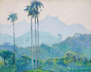 Paysage tropical "Zijnea", huile sur toile, signée et datée 1930...