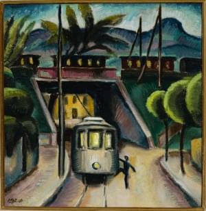 Le Tramway à Rolle, huile sur toile, monogrammée et datée 1918,...