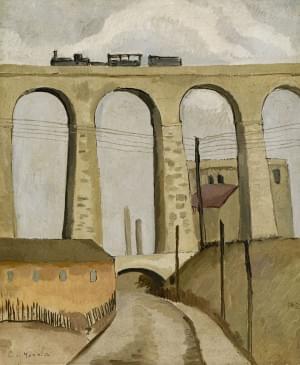Le viaduc, huile sur toile, signée, 46x38 cm