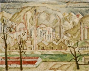 Les usines, huile sur pavatex, 39x49 cm