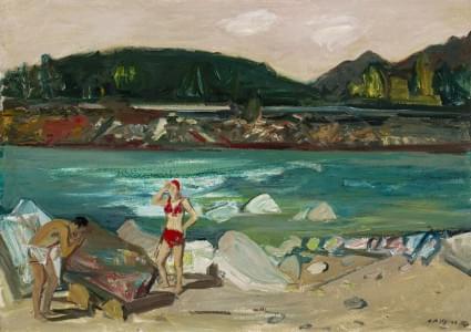 Les baigneurs à la Maggia, huile sur toile signée et datée 43, 3...