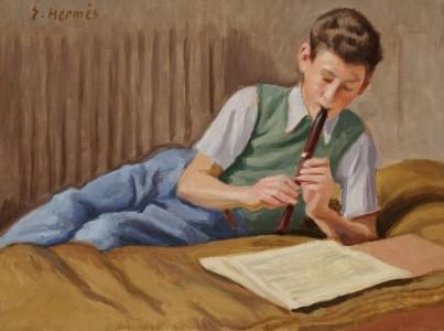 Le flutiste, huile sur toile, signée, 30,5x43 cm