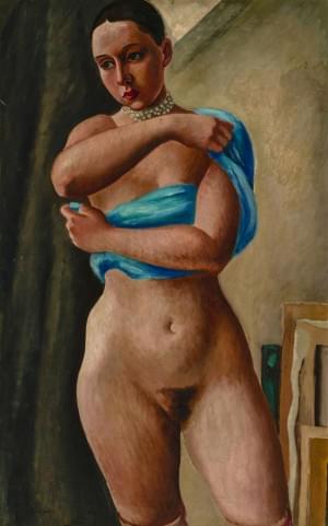 Nu sur un fauteuil, huile sur panneau, signée et datée 44, 45x32...