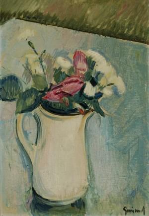 Bouquet d'œillets blancs, huile sur toile, signée et datée 1918...