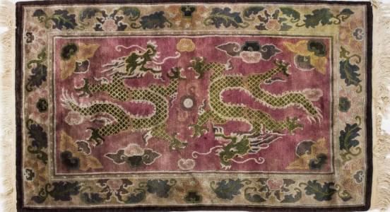 Champ central orné de trois médaillons sur fond rouge, bordure à...