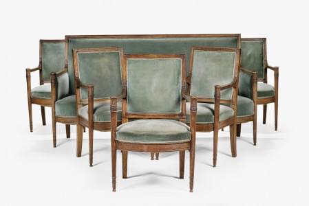 702. Paire de bergères et deux fauteuils d'époque Louis XVI