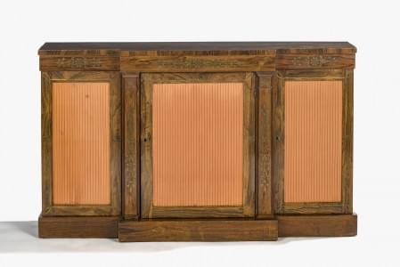 Côtés et façade galbés, bois de placage et laiton, 140x7638 cm