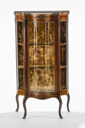 Partie supérieure vitrée, 3 tiroirs et 4 vanteaux en partie bass...