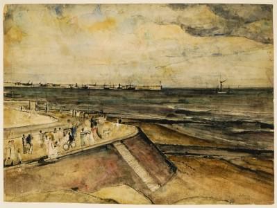 La rade de Zeebrugge, aquarelle et encre sur papier, signée et d...