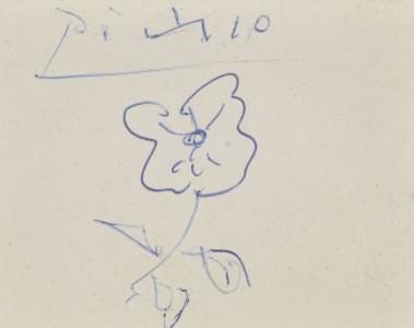 Fleur, pointe bic sur papier, signée, 8x10 cm