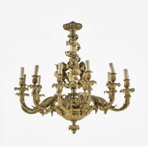 Bronze doré à décor de putti jouant du tambourin , H 85 cm