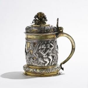 393. Chope couverte à décor appliqué de scènes mythologiques présenta...