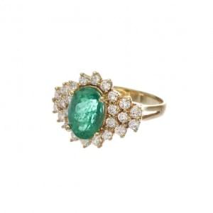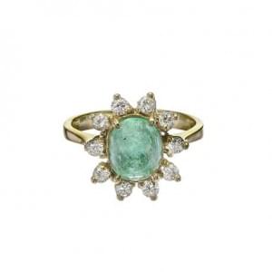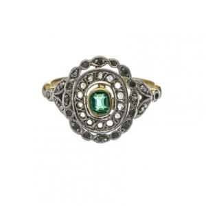 213. Bague sertie d'une émeraude ovale entourée de roses de diamants