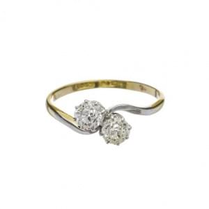 212. Bague toi et moi sertie de deux diamants, l'un taille ancienne e...