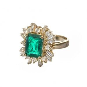 259. Bague sertie d'une émeraude taille rectangle (env. 2 ct) entouré...