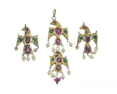 Travail indien, parure en or env. 97 à 99% fourré, boucles d'ore...
