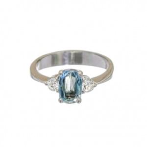271. Bague sertie d'une aigue-marine (env. 0.6 ct) épaulée de deux di...