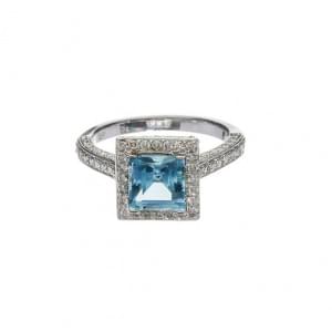 272. Bague sertie d'une topaze bleue carrée (env. 2.8 ct) entourée de...