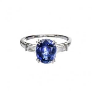 277. Bague sertie d'un saphir ovale (env. 3.3 ct) épaulé de deux diam...