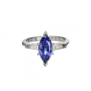 278. Bague sertie d'un saphir taille marquise (env. 2.5 ct) épaulé de...
