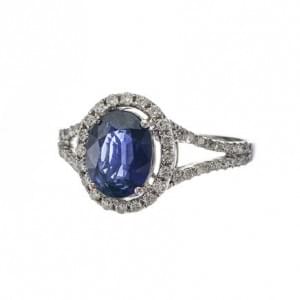 281. Bague sertie d'un saphir ovale (env. 1.5 ct) entouré et épaulé d...