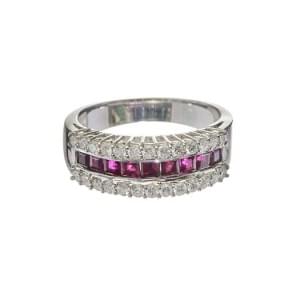 283. Bague sertie d'une ligne de rubis taille princesse entourée de d...