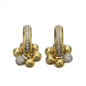 296. Pendants d'oreilles à motifs de guirlandes de cœurs sertis de di...