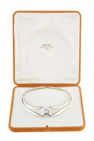 315. Hermès, collier tour de cou rigide orné d'un motif carré
