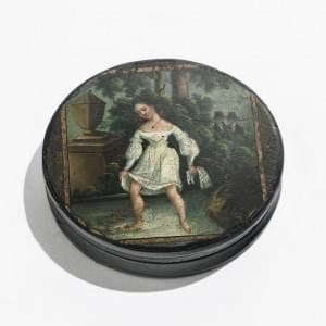 367. Boîte ronde à décor de jeune femme se rafraîchissant les pieds d...