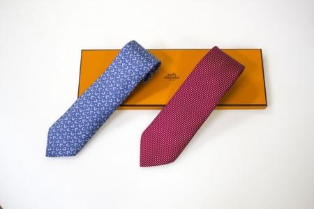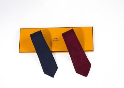 L'une à fond bordeaux et l'autre à fond bleu marine, soie, L 145...