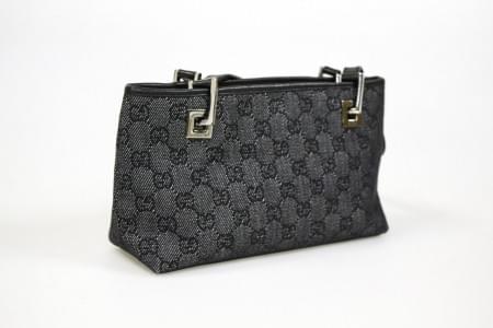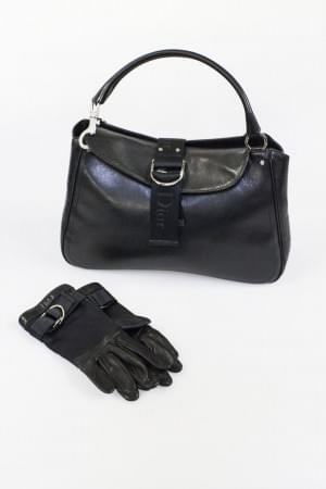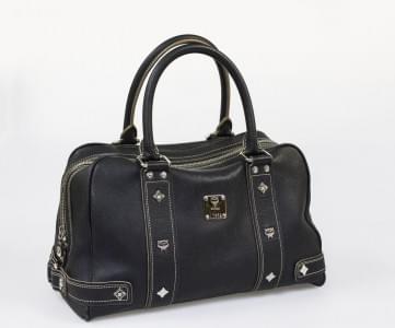 Toile noire, garniture en métal, double anse en cuir noir, 25x8...