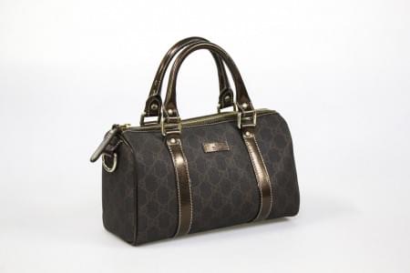 Toile marron et simili cuir, garniture en métal, double anse, 26...