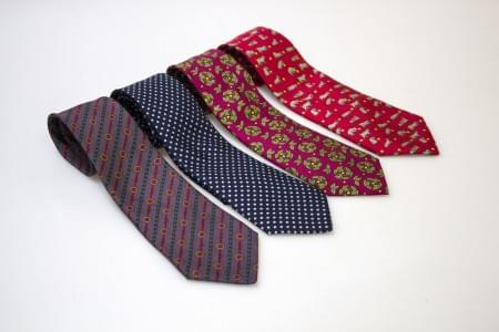 L'une à motif de chiens sur fond rouge, l'une à décor de pois su...