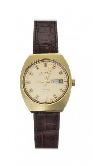 Cadran doré, aiguilles et chiffres arabes noirs, boîtier en or 7...