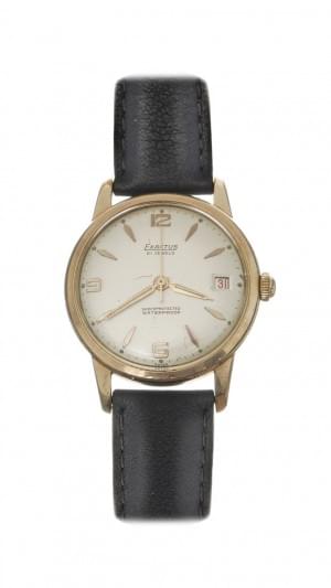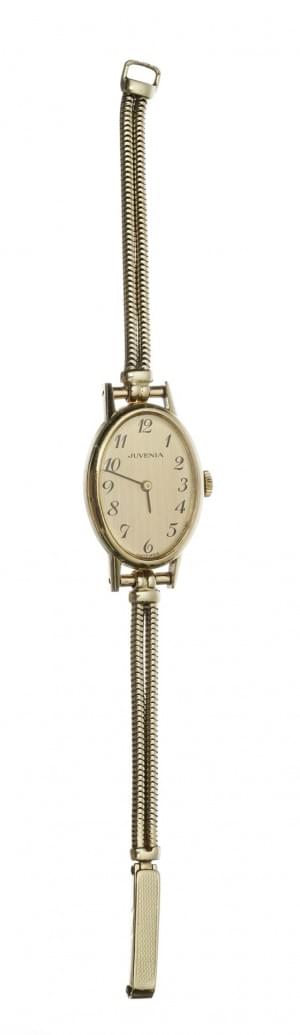 Cadran, aiguilles et chiffres arabes dorés, boîtier et fermoir e...