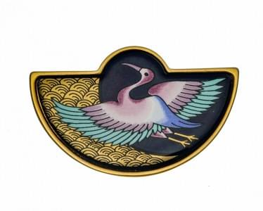 Laque rouge et vermeil, anneau en métal trois ors, L 14 cm