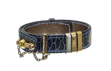 Acier laqué noir retenu par un noeud de cuir noir, dans sa boîte
