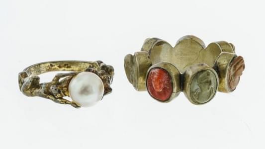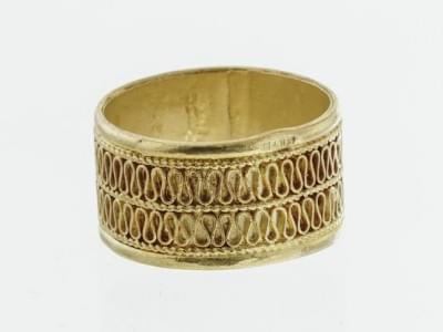 Travail ancien, or 750, doigt 52-12 et 50-10, poids brut 7 g