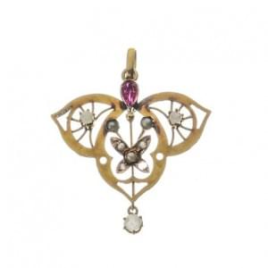 3068. Lot de trois pendentifs, deux sertis de perles et l'un retenant...