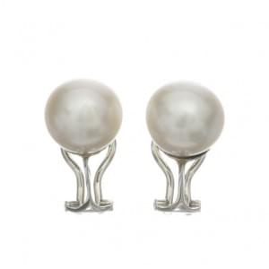 3069. Paire de dormeuses serties chacune d'une perle (D env. 10.6 mm)