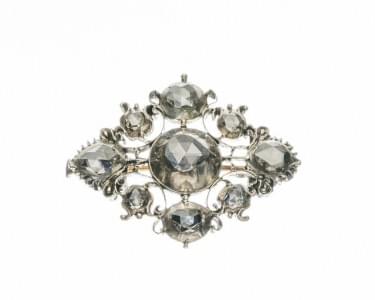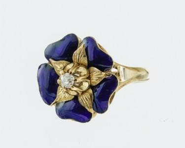 3089. Broche fleur émaillée sertie de diamants taille rose
