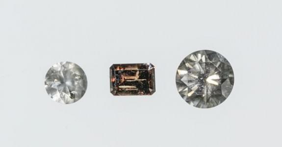 3076. Lot de trois diamants sur papier présentant diverses teintes de...