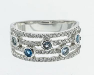 3085. Bague composée de quatre anneaux sertis de pierres bleues et de...