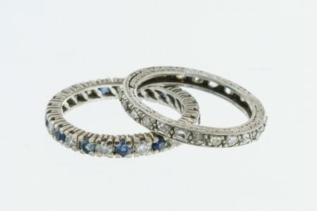 3088. Lot de deux anneaux rivière, l'un serti de roses de diamants, l'...
