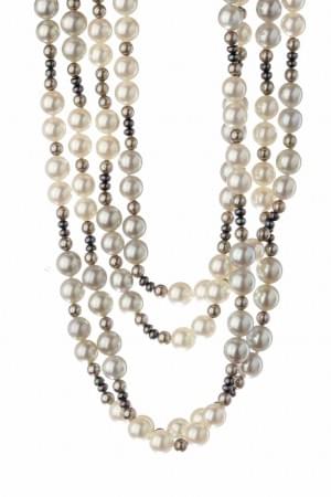3093. Sautoir ouvrant de perles du Japon blanches, de perles teintes e...