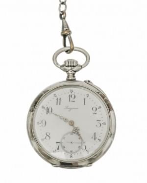 Métal argenté, H 4.5 cm. On joint un étui à feuilles en métal ar...