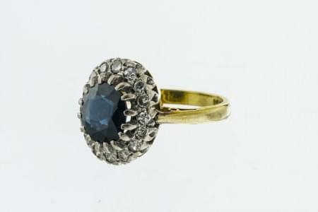 3109. Bague marguerite sertie d'un saphir (env. 1.2 ct) entouré de dia...